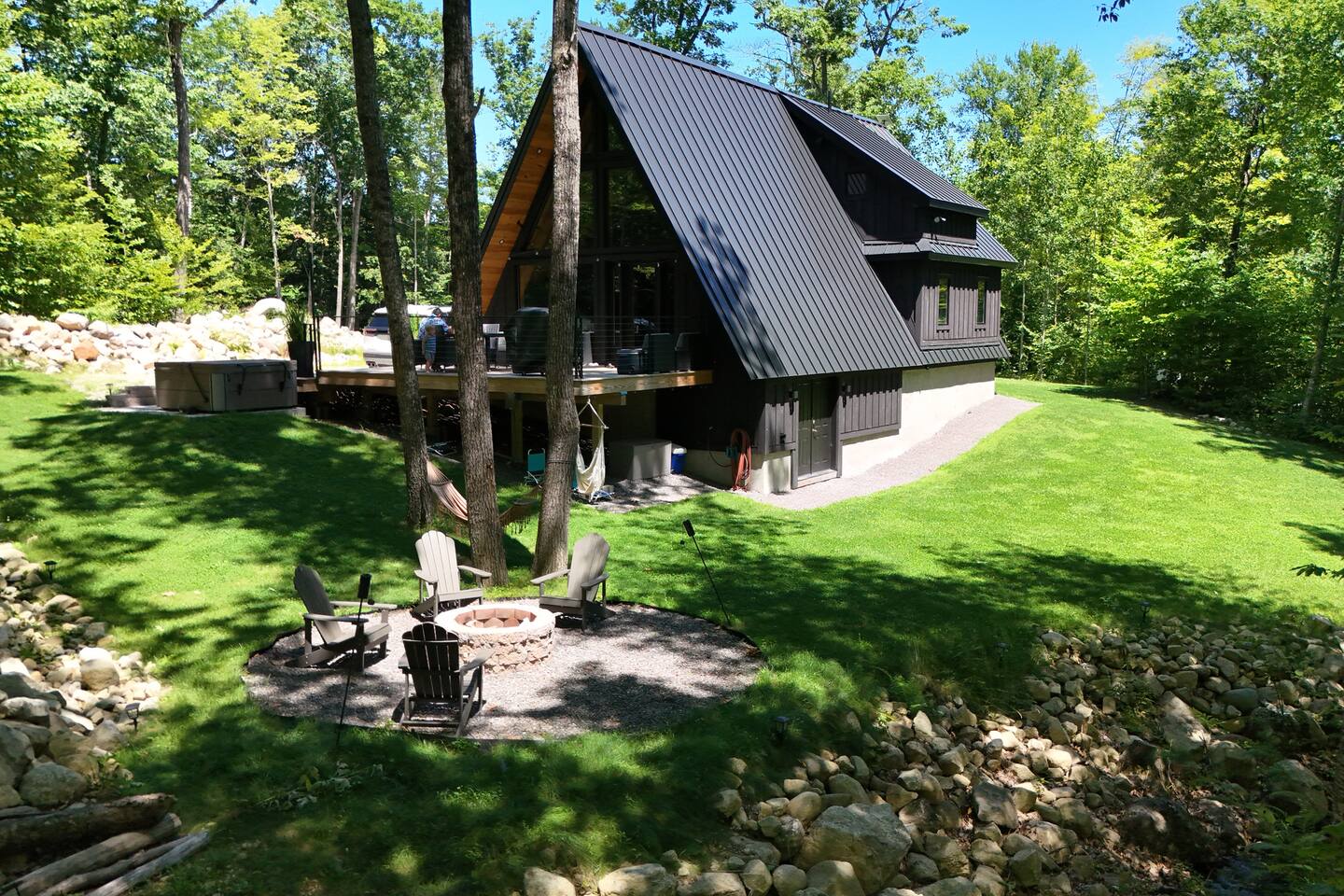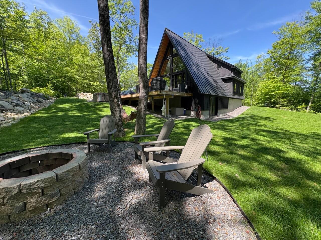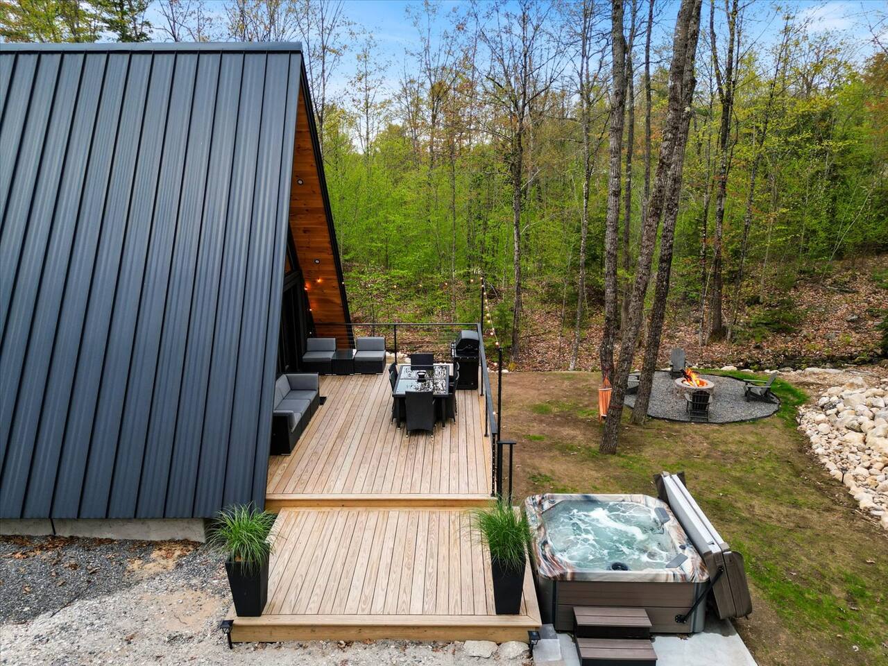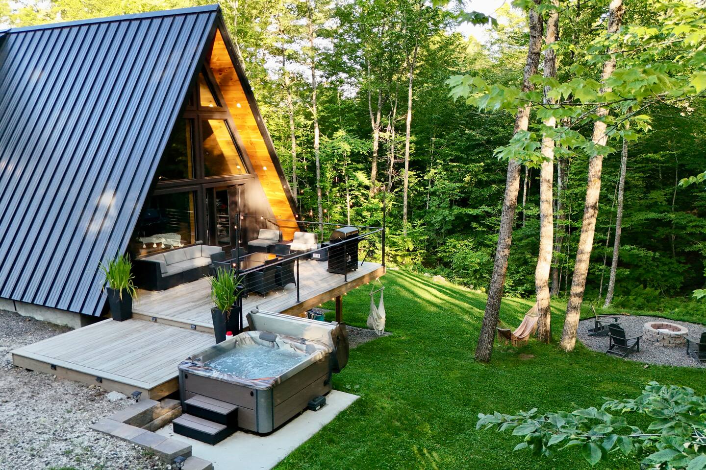 Luxury and privacy await in this stunning A-frame retreat. Minutes from Sebago Lake State Park and Nasons Beach. Relax in the 3-4 person hot tub or gather around the fire pit under the stars. Minutes from many restaurants, lobster pound, boat rentals, ice cream, hiking and fishing. With an arcade game on site, enjoy all the amenities for a memorable stay in this serene setting. Lake passes available upon request.