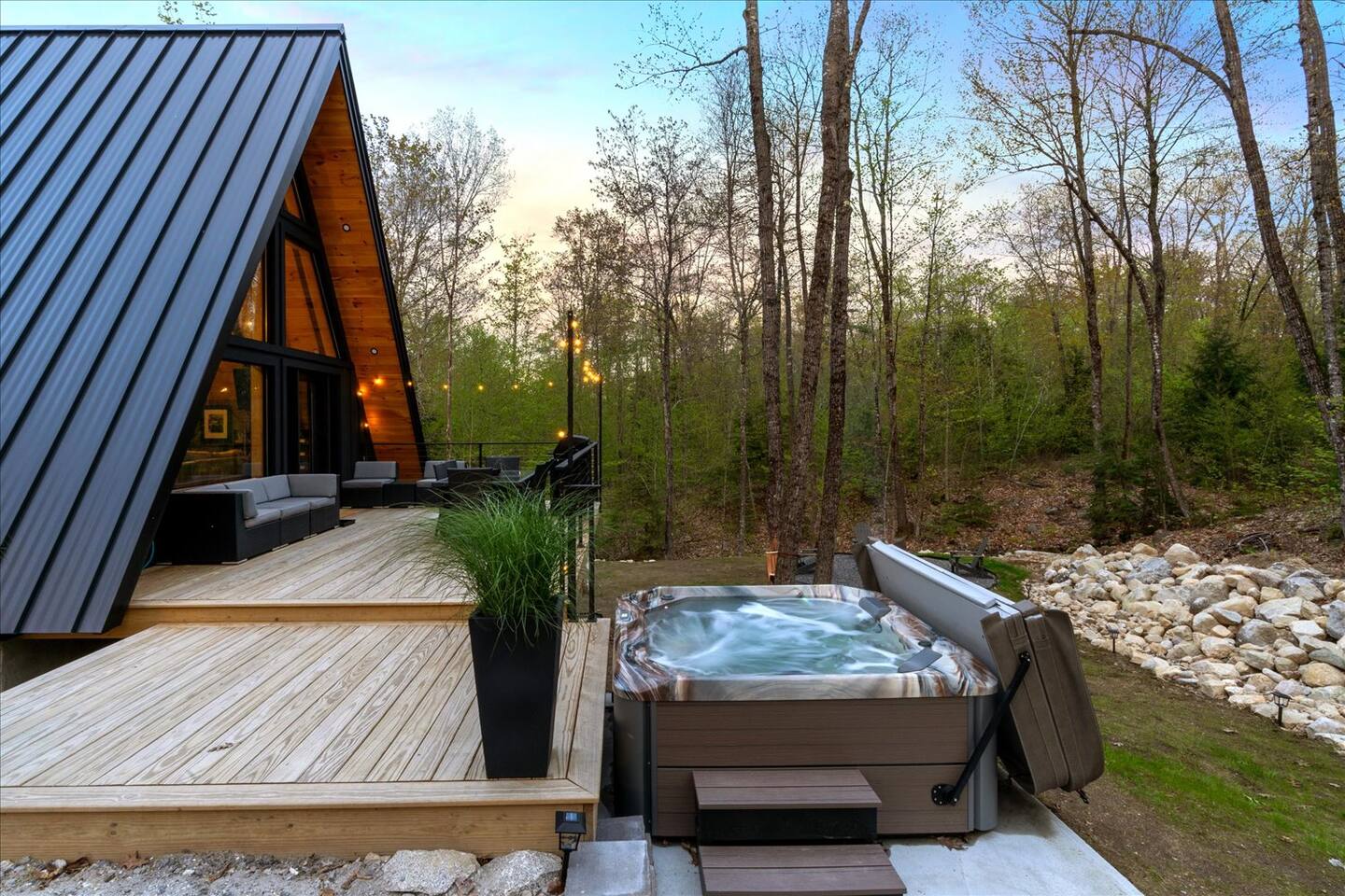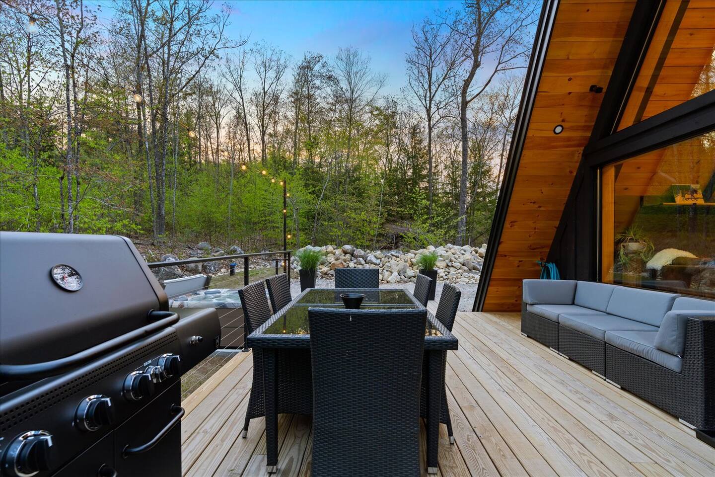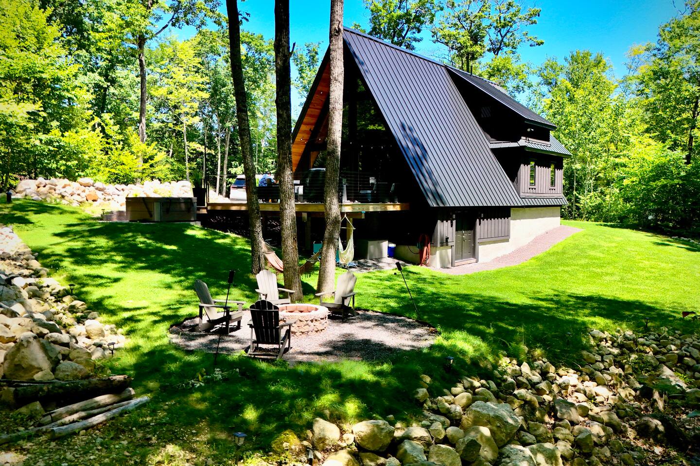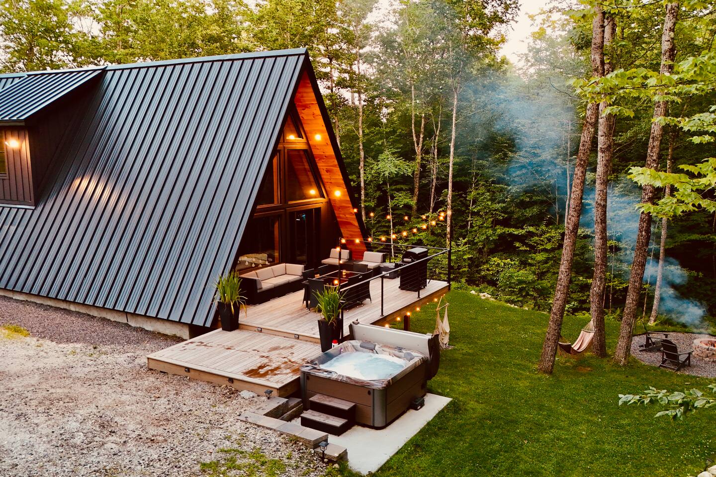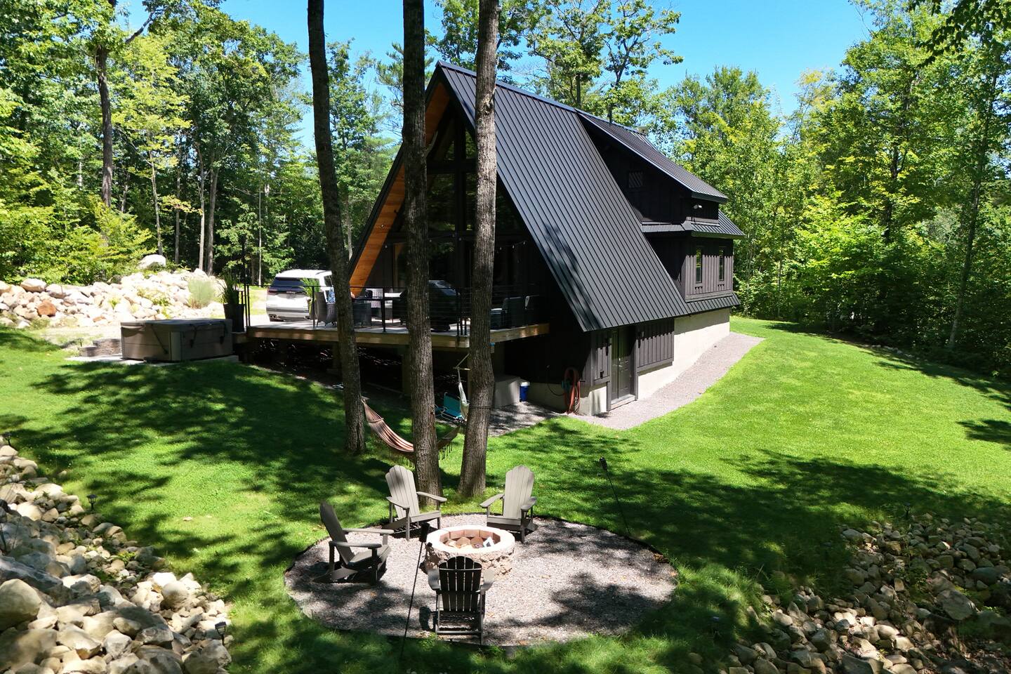 Luxury and privacy await in this stunning A-frame retreat. Minutes from Sebago Lake State Park and Nasons Beach. Relax in the 3-4 person hot tub or gather around the fire pit under the stars. Minutes from many restaurants, lobster pound, boat rentals, ice cream, hiking and fishing. With an arcade game on site, enjoy all the amenities for a memorable stay in this serene setting. Lake passes available upon request.