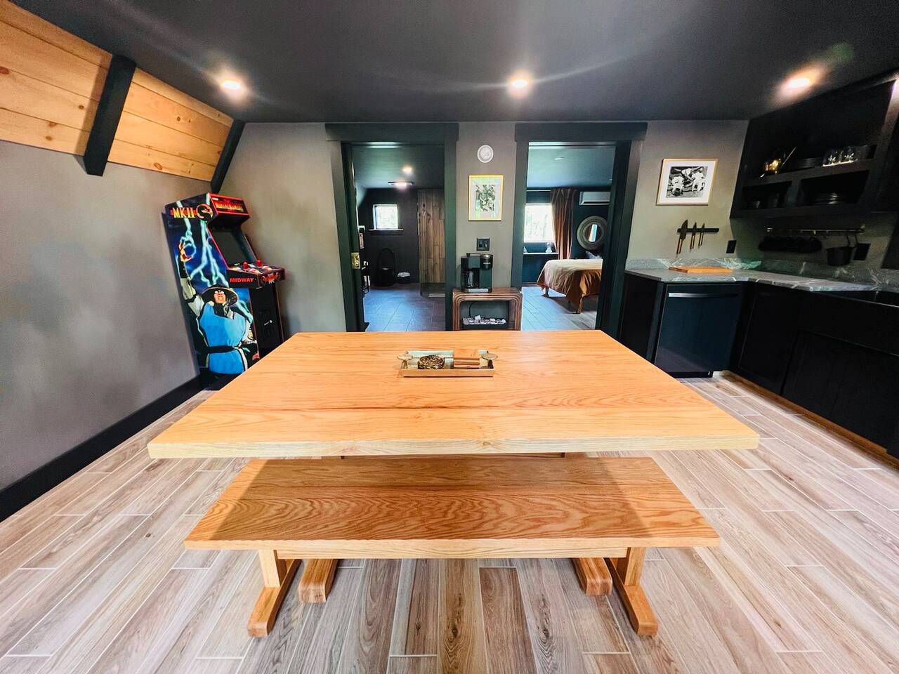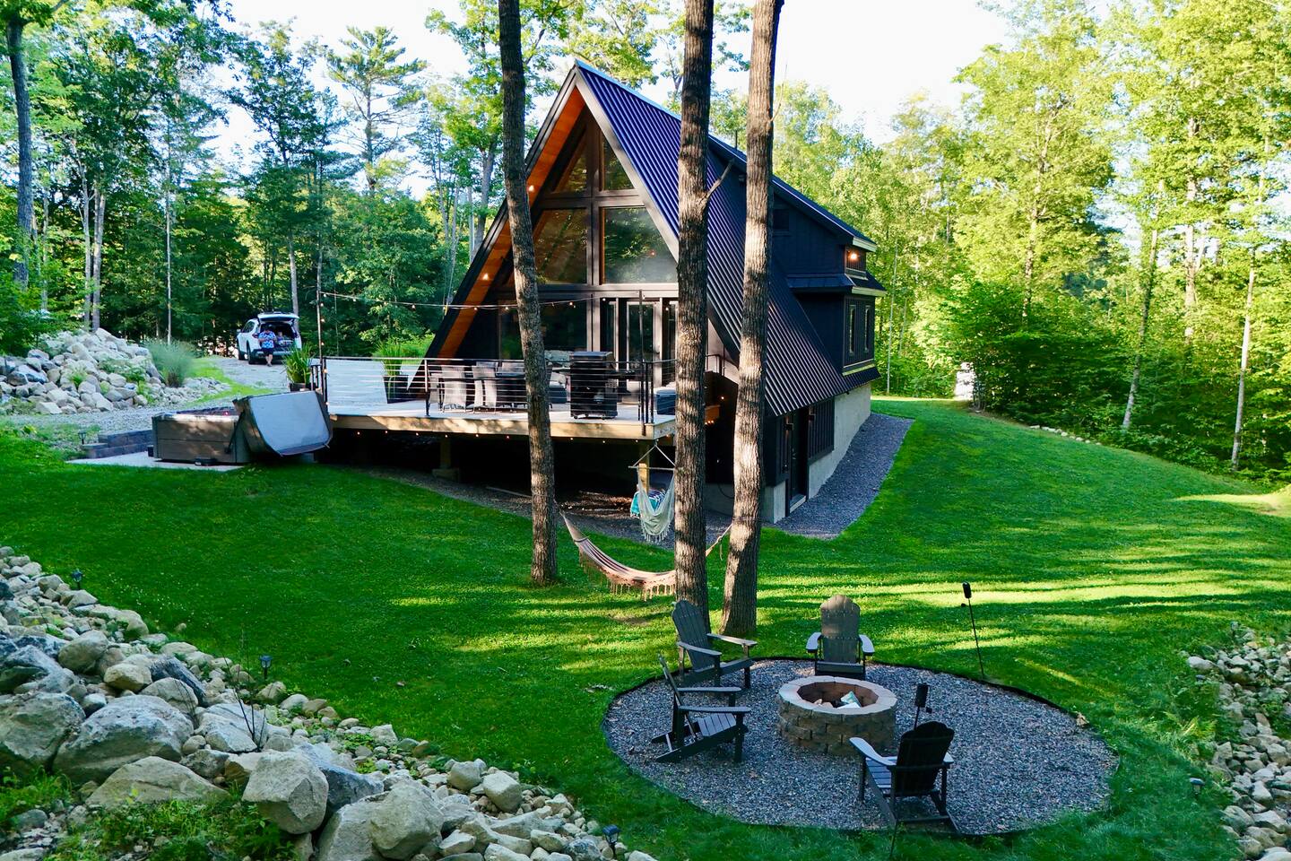 Escape to your private retreat nestled on 20 acres of serene woodlands, offering unparalleled tranquility and seclusion. Only minutes from State Park, beaches, boat launch, restaurants and a convenience store. This property is ideally located fifteen minutes from the Naples Causeway and forty five minutes to Portland offering you a multitude of dining and entertainment options. North Conway and the Mount Washington valley are a 30 minute drive and offer a plethora of shopping and leaf peeping options. Find yourself skiing on Mt Pleasant in Bridgton just 20 minutes away. This spacious Airbnb boasts a sprawling lawn, ample parking, and a generous deck for al fresco dining under the stars. Recharge your electric vehicle with ease using the provided EV charger. Lounge in hammocks or find your perfect spot to relax amidst numerous seating areas scattered throughout the property. Unwind in the luxurious hot tub, soaking in the peaceful surroundings. As the evening settles in, gather around the inviting fire pit for cozy conversations and marshmallow roasting. Experience the ultimate outdoor getaway with unmatched privacy, natural beauty, and indulgent amenities. Step inside your home where every detail is crafted to ensure an unforgettable stay. Accommodates 6 guests comfortably and could accommodate up to eight guests. You're greeted by the warmth of a fully equipped kitchen, inviting you to indulge your culinary creativity. Multiple sitting areas beckon for relaxation, each adorned with coffee makers for your morning brew ritual. The convenience of in-unit laundry facilities allows for hassle-free travel. Two luxurious bathrooms await, stocked with premium toiletries and plush towels. Nestled within are two uniquely designed bedrooms, each boasting sumptuous linens and pillows for restful nights. Adorned with artisanal touches, the handmade dining table stands as the centerpiece of the space, surrounded by thoughtfully curated furniture. For moments of leisure, arcade games, televisions and lighting fast internet offer entertainment, ensuring every guest finds joy in this carefully curated haven. Please no parties and no pets. If you are booking your stay during winter months, please try to bring a four-wheel-drive vehicle or something with snow tires. Our driveway is steep, we do our best to keep it plowed, salted, and sanded, but during a storm it could be slick.